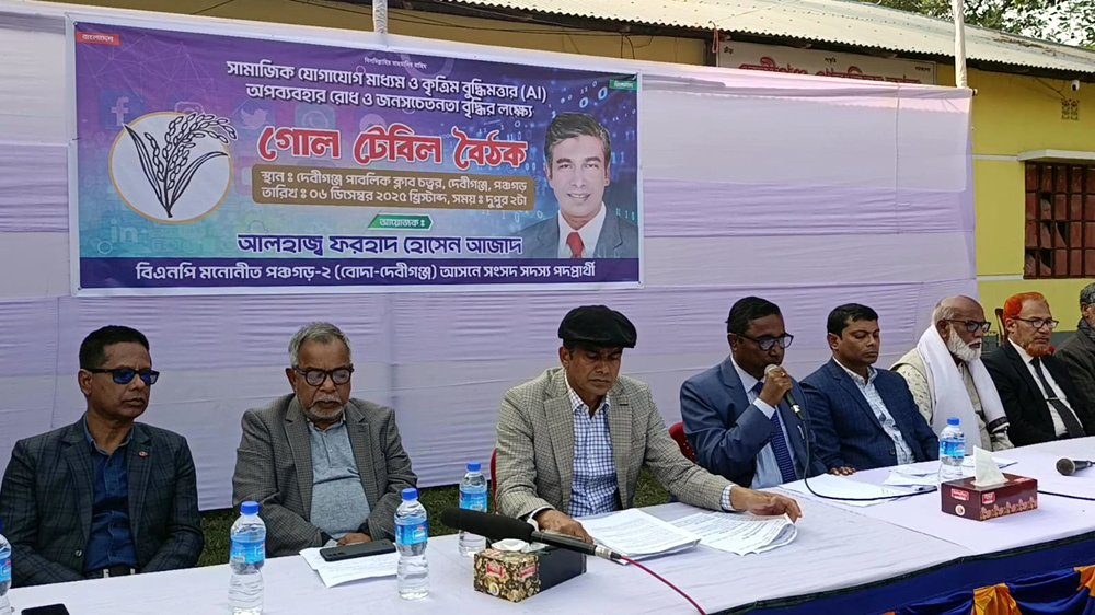 বিভিন্ন সূত্রে আমরা তা জানতে পেরেছি। জাতীয় নির্বাচনের তফশিল ঘোষণার পর এই ফেক আইডিগুলো প্রার্থীদের বিরুদ্ধে নানা ধরনের অপপ্রচার চালাবে। তারা আর্টিফিশিয়াল ইন্টেলিজেন্স ব্যবহার করে প্রার্থীদের সামাজিক মর্যাদা ক্ষুন্ন করতে পারে। এ ধরনের প্রস্তুতিও তারা গ্রহণ করেছে। আজ শনিবার বিকেলে পঞ্চগড়ের দেবীগঞ্জ পাবলিক ক্লাব চত্বরে আয়োজিত সামাজিক যোগাযোগ মাধ্যম ও কৃত্রিম বুদ্ধিমত্তার অপব্যবহার রোধ শির্ষক গোল টেবিল বৈঠকে প্রধান অতিথির বক্তব্যে তিনি এসব কথা বলেন। বৈঠকে গণমাধ্যমকর্মী, শিক্ষক, আইনজীবী, ইমাম, পুরোহিত, চিকিৎসক সহ বিভিন্ন পেশার মানুষ অংশ নেন। এসময় তিনি আরও বলেন আমরা প্রযুক্তির বিরুদ্ধে নয়। ডিজিটাল যুগে সামাজিক যোগাযোগ মাধ্যম ও কৃত্রিম বুদ্ধিমত্তার অপব্যবহারে সমাজে তথ্য বিভ্রান্তি, গুজব, ব্যক্তিগত ও সামাজিক নিরাপত্তাহীনতা, সামাজিক স্থিতিশীলতা ও নৈতিকতার উপর গভীর প্রভাব ফেলছে। এসব বিষয়ে সঠিক দিকনির্দেশনা, সমাজকে সচেতন ও সুরক্ষিত রাখতে বিভিন্ন পেশাজীবি ও দায়িত্বশীল সচেতন নাগরিকদের সম্মিলিত ভূমিকা অত্যন্ত গুরুত্বপূর্ণ।
