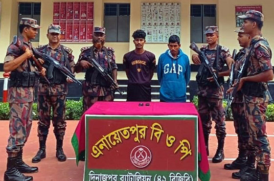 বিরল ও বোচাগঞ্জে আন্তর্জাতিক সীমানা অবৈধভাবে পারাপারের সময় মানব পাঁচারকারীসহ ৩ জন সাধারণ বাংলাদেশী নাগরিককে আটক করতে সক্ষম হয়েছে বর্ডার গার্ড বাংলাদেশ (বিজিবি) সদস্যগণ। বিজিবি এক প্রেস বিজ্ঞপ্তিতে জানান, গোয়েন্দা তথ্যের ভিত্তিতে ৪২ বর্ডার গার্ড ব্যাটালিয়ন গত মঙ্গলবার মধ্যরাতে বিরল উপজেলার ধর্মপুর ইউনিয়নের সাতদাগ (কান্দাপাড়া) নামক স্থানে এনায়েতপুর বিওপি এর সীমান্ত পিলার ৩২১ নং মেইন পিলারের ৯ নং সাব পিলার হতে আনুমানিক ১৫০ গজ বাংলাদেশের অভ্যন্তরে কিছু বাংলাদেশী নাগরিক বাংলাদেশ হতে অবৈধভাবে ভারতে পারাপারের সময় বিজিবি টহলদল তাদের চ্যালেঞ্জ করে এবং ২ জনকে আটক করতে সক্ষম হয়। উল্লেখ্য, আটককৃত ২ জনের মধ্যে ১ জন মানব পাঁচারকারী এবং ১ জন বাংলাদেশী সাধারণ নাগরিক। আটককৃত ব্যক্তিদ্বয় হলেন- ধর্মপুর ইউনিয়নের কান্দাপাড়া (সাতদাগ) মো. মাসুদ রানা এর ছেলে মানব পাঁচারকারী মো. হেলাল পারভেজ পায়েল (২৭) ও বোচাগঞ্জ উপজেলার মোল্লাপাড়া গ্রামের মৃত কান্ত দে এর ছেলে শ্রী বিরেন ভদ্র (৪০)। এছাড়াও পাশর^বর্তী বোচাগঞ্জ উপজেলার ছাতইল ইউনিয়নের পরমেশ্বরপুর বিওপি’র সদস্যগণ ৩৩১ নং মেইন পিলারের ৫ নং সাব পিলার এলাকা হতে দিনাজপুর সদর উপজেলার বড় বন্দর (চুড়িপট্টি) এলাকার হরিপদ রায় এর মেয়ে ভারতী রাণী রায় (৪৫) কে পৃথকভাবে আটক করে। আজ বুধবার সকালে আটককৃত ৩ জনকে বিরল থানায় মামলা দায়েরপূর্বক সোপর্দ করে। ৪২ বর্ডার গার্ড ব্যাটালিয়নের অধিনায়ক লে. কর্নেল মো. আহসান উল ইসলাম- পিএসসি জানান, ভারতে অবৈধভাবে অনুপ্রবেশকারী বাংলাদেশী নাগরিকদের বিরল থানা পুলিশের কাছে হস্তান্তর করা হয়েছে।