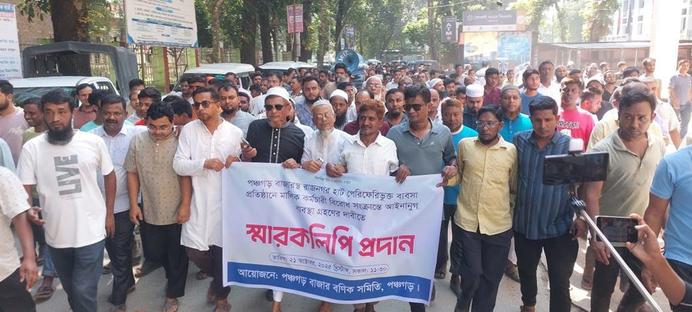 পঞ্চগড় বাজারে পেরিফেরিভুক্ত ব্যবসা প্রতিষ্ঠানগুলোর মালিক ও এক অসাধু চক্রের মধ্যে বিরোধের জেরে আইনানুগ ব্যবস্থা গ্রহণের দাবিতে জেলা প্রশাসকের কাছে স্মারকলিপি দিয়েছে ব্যবসায়ী সমাজ।