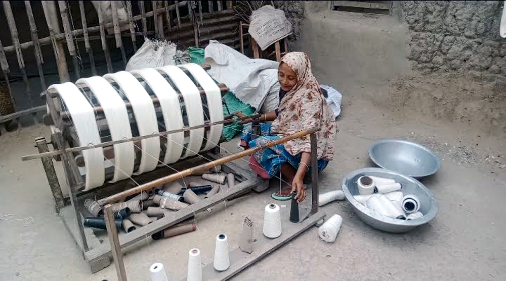 আক্কেলপুরে ঘরে ঘরে কুটির শিল্প: ঝুট কাপড় থেকে সংগ্রহ হচ্ছে সুতা