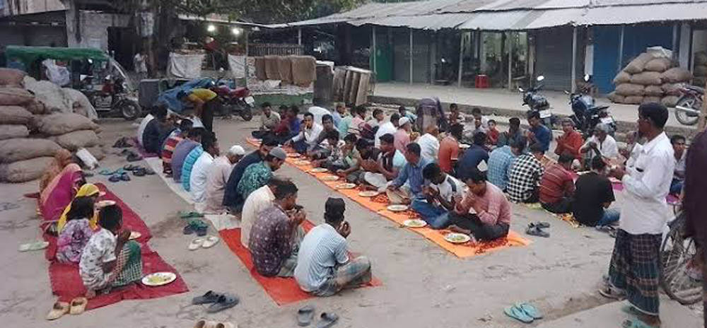 বাজারের অন্য ব্যবসায়ীরা জানান, রফিকুল ইসলাম দোকান ভাড়া নিয়ে হোটেল ব্যবসা করেন। পৌর শহরেই তাঁর বসবাস। ২০১৬ সাল থেকে রমজান মাসে সাহ্রি ও ইফতারের সময় তাঁর হোটেলে টাকা ছাড়াই লোকজন খাবার খান। বিশেষ করে ব্যবসায়ী, হাসপাতালে রোগীদের সঙ্গে আসা স্বজন, রেলস্টেশনে আসা যাত্রীরা টাকা ছাড়া নিয়মিত সাহ্রি ও ইফতারি খাচ্ছেন। কখনও গরুর মাংস, কখনও মাছ, ভাজি, ডাল শেষে এক গ্লাস করে দুধ দিয়ে সমাপ্ত হয় সাহ্রি পর্ব। ইফতারিতে প্রতিদিন থাকে বিরিয়ানি, ছোলা, বুন্দিয়া, মুড়ি, পেঁয়াজু, বেগুনি, সঙ্গে শরবত। হোটেলের ভেতর ছাড়িয়ে হাটের জায়গায় ডেকোরেটরের কাপড় বিছিয়েও ইফতার করানো হয়।