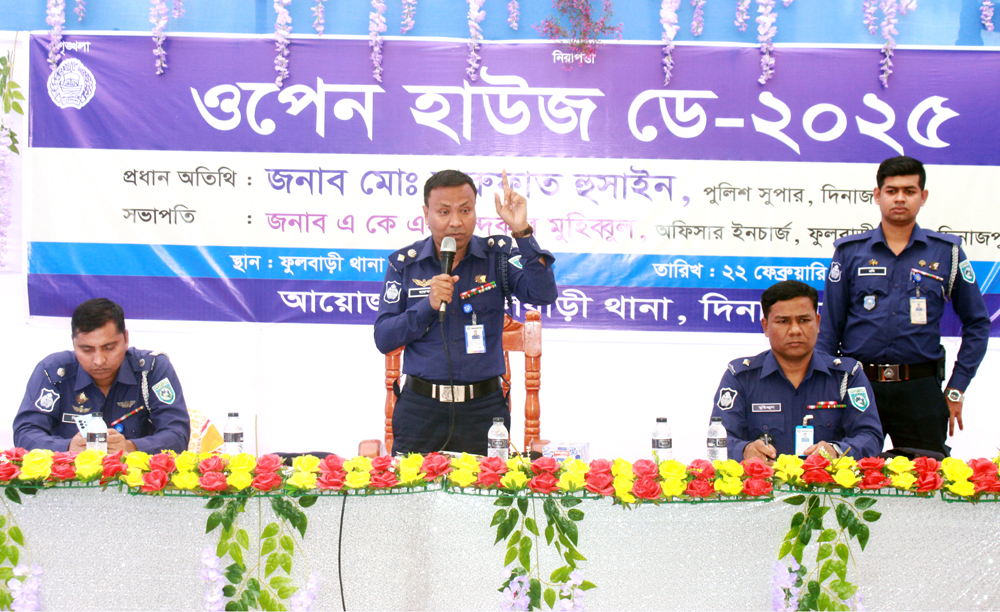 জনসাধারণের অংশ গ্রহনে ফুলবাড়ী থানা চত্বরে আয়োজিত ওপেন হাউজ ডে অনুষ্ঠানে ফুলবাড়ী থানার ভারপ্রাপ্ত কর্মকর্তা (ওসি) একেএম খন্দকার মুহিব্বুল এর সভাপতিত্বে ও পুলিশ পরিদর্শক (ইন্সপেক্টর তদন্ত) আব্দুল্লাহ আল মামুন এর সঞ্চালনায় বিশেষ অতিথি হিসেবে বক্তব্য রাখেন অতিরিক্ত পুলিশ সুপার (দিনাজপুর সদর সার্কেল) শেখ মো. জিন্নাহ আল মামুন।