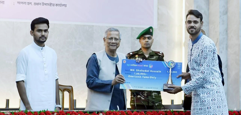 স্থানীয় সরকার ও পল্লী উন্নয়ন এবং যুব ও ক্রীড়া মন্ত্রণালয় বিষয়ক উপদেষ্টা আসিফ মোহাম্মদ সজীব ভুঁইয়ার সভাপতিত্বে অনুষ্ঠিত এ পুরস্কার প্রদান অনুষ্ঠানে স্বাগত বক্তব্য দেন যুব ও ক্রীড়া মন্ত্রণালয়ের সচিব মাহবুবুল আলম।