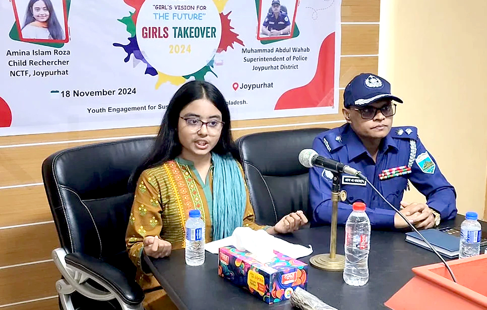 জয়পুরহাটে এক ঘণ্টার পুলিশ সুপার হয়েছিলেন আমিনা ইসলাম রোজা। আজ সোমবার দুপুরে জয়পুরহাটের পুলিশ সুপারের কার্যালয়ে পুলিশ সুপার মোহাম্মদ আব্দুল ওয়াহাবের কাছ থেকে ১ ঘণ্টার জন্য দায়িত্ব বুঝে নেন তিনি । রোজা জয়পুরহাট মহাবিদ্যালয়ের একাদশ শ্রেণির শিক্ষার্থী। প্ল্যান ইন্টারন্যাশনাল এর ‘গার্লস টেকওভার’ কর্মসূচির আওতায়’ ইয়েস বাংলাদেশ’-এর সহযোগিতায় ‘ন্যাশনাল চিলড্রেন টাস্কফোর্সের (এনসিটিএফ)’ এর নারী নেতৃত্ব উদ্বুদ্ধকরণ কর্মসূচির আওতায় এই দায়িত্ব প্রদান করা হয়। দায়িত্ব প্রদানকালে পুলিশ সুপার মোহাম্মদ আব্দুল ওয়াহাব জানান, আজকের শিশু আগামীর প্রশাসক। একদিন এই শিশুরাই বড় চেয়ারে বসবে। তাদের বর্তমানের চিন্তা চেতনাগুলো ভবিষ্যতে কর্মজীবনে বাস্তবায়ন করবে।