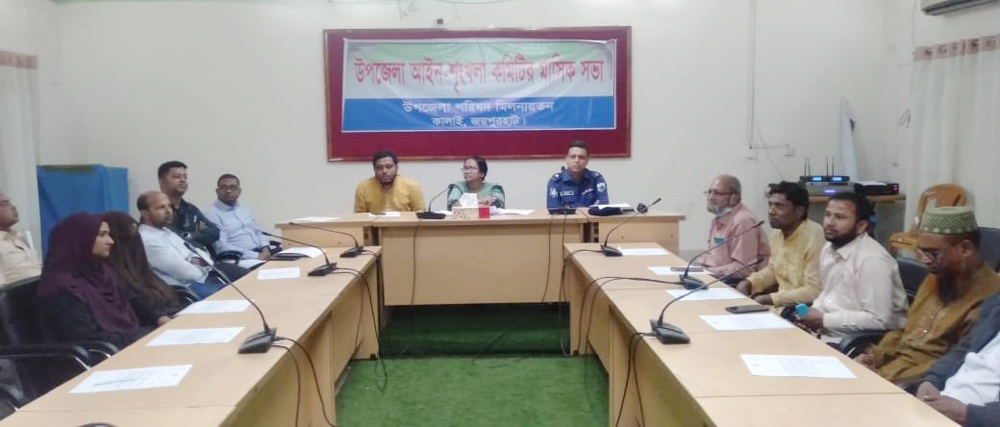 জয়পুরহাটের কালাই উপজেলার আইন-শৃঙ্খলা কমিটির মাসিক সভা অনুষ্ঠিত হয়েছে। আজ মঙ্গলবার সকাল ১০ টায় উপজেলা পরিষদ মিলনায়তনে এক আলোচনা সভা অনুষ্ঠিত হয়।
