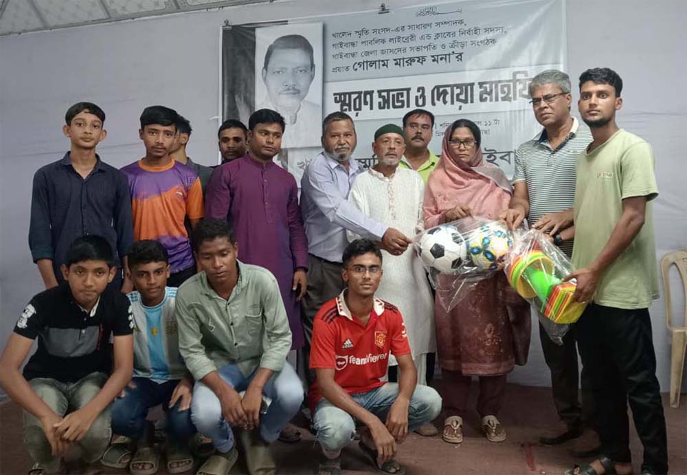 খালেদ স্মৃতি সংসদের সাধারন স¤পাদক ও ক্রীড়া সংগঠক প্রয়াত গোলাম মারুফ মনার স্মরণ সভা উপলক্ষে আলোচনা ও দোয়া মাহফিল গাইবান্ধা পাবলিক লাইব্রেরী এন্ড ক্লাব মিনায়তনে শনিবার দুপুরে অনুষ্ঠিত হয়েছে। সভার শুরুতেই প্রয়াত গোলাম মারুফ মনার আত্মার মাগফেরাত কামনা করে এক মিনিট নিরবতা পালন করা হয়। আলোচনা সভায় সভাপতিত্ব করেন খালেদ স্মৃতি সংসদের সভাপতি কাজী জিয়াউল হাফিজ।