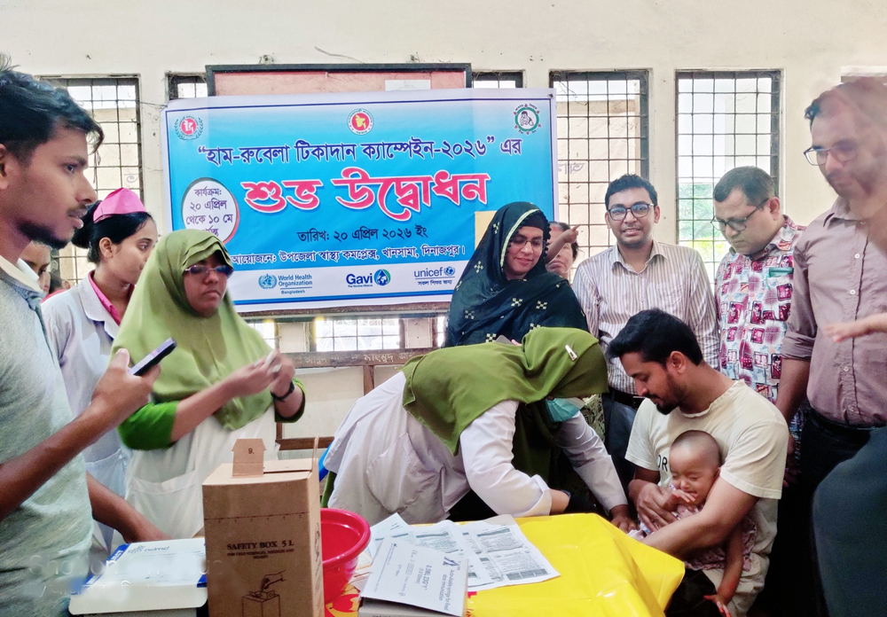 সম্প্রসারিত টিকাদান কর্মসূচি (ইপিআই)-এর আওতায় দিনাজপুরের খানসামা উপজেলায় হাম-রুবেলা টিকাদান কার্যক্রম-২০২৬ শুরু হয়েছে।