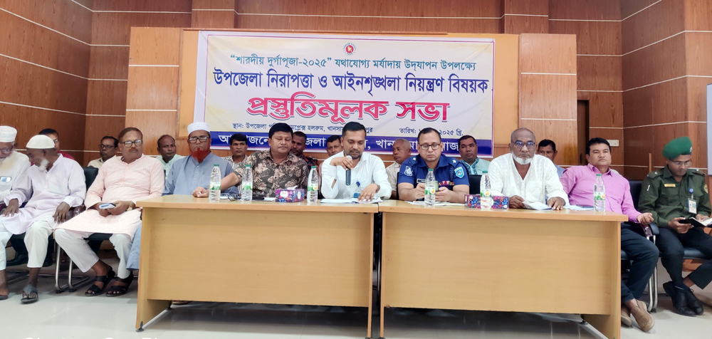 শারদীয় দূর্গাপূজা-২০২৫ যথাযোগ্য মর্যাদায় উদযাপন উপলক্ষে দিনাজপুরের খানসামায় নিরাপত্তা ও আইনশৃঙ্খলা নিয়ন্ত্রণ বিষয়ক প্রস্তুতিমূলক সভা অনুষ্ঠিত হয়েছে।