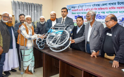 গাইবান্ধায় প্রতিবন্ধী ও পঙ্গু ব্যক্তিদের মাঝে হুইল চেয়ার বিতরণ