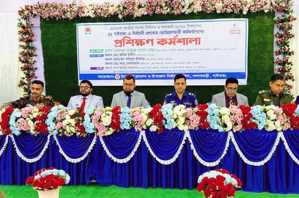 আসন্ন ত্রয়োদশ জাতীয় সংসদ নির্বাচন ও গনভোট ২০২৬ উপলক্ষে ৩১ গাইবান্ধা ০৩ নির্বাচনী এলাকার ভোট গ্রহনকারী কর্মকর্তাদের দিন ব্যাপি এক প্রশিক্ষণ কর্মশালা অনুষ্ঠিত হয়েছে।