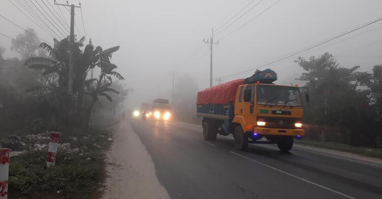 ঘন কুয়াশা পড়ছে দিনাজপুরে