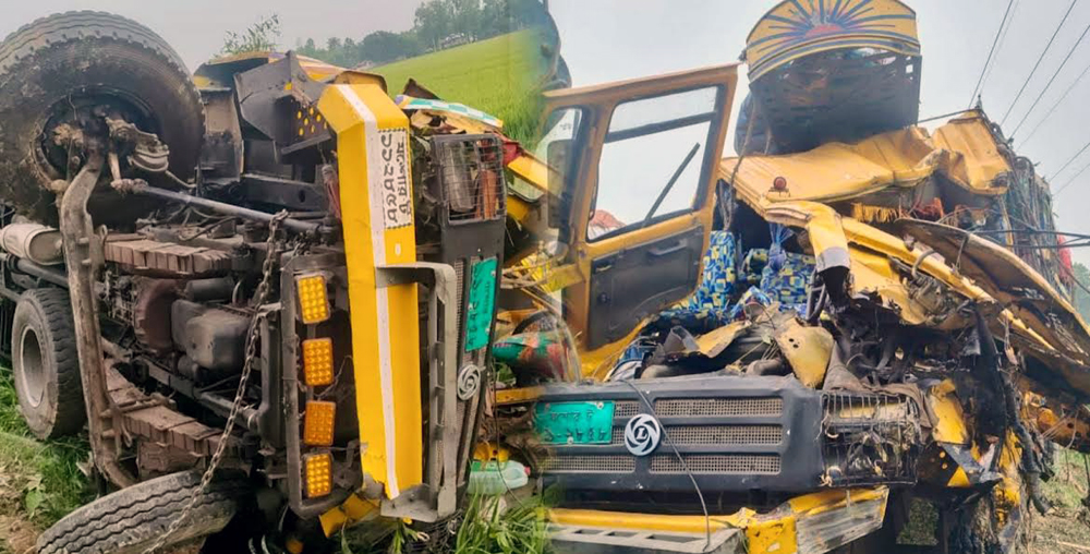 ঘোড়াঘাটে দুই ট্রাকের মুখোমুখি সংঘর্ষে ট্রাকের চালক নিহত
