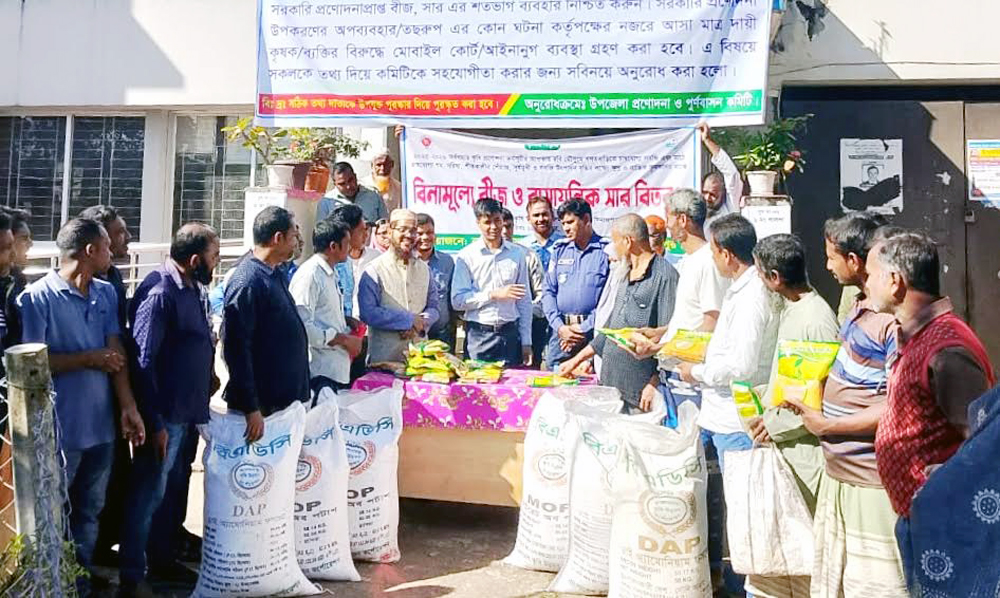 উপজেলা নির্বাহী কর্মকর্তা (ইউএনও) রফিকুল ইসলাম ও উপজেলা কৃষি অফিসার রফিকুজ্জানান এর উপস্থিতিতে আজ মঙ্গলবার বিকাল ৩ টায় উপজেলা কৃষি অফিস কার্যালয়ে ২৫০ কৃষকের মাঝে ১ কেজি সরিষা বীজ, ১০ কেজি ডিএপি সার ও ১০ কেজি পটাশ সার বিতরণের মাধ্যমে এ কার্যক্রমের উদ্বোধন করা হয়।