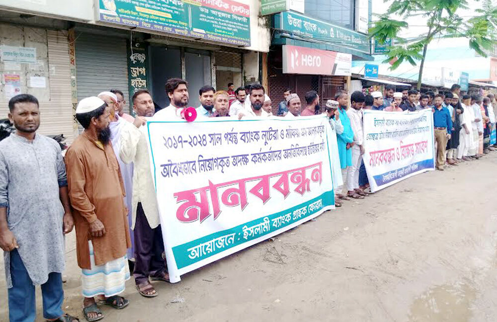 চার দফা দাবিতে ইসলামী ব্যাংক গ্রাহকদের মানববন্ধন