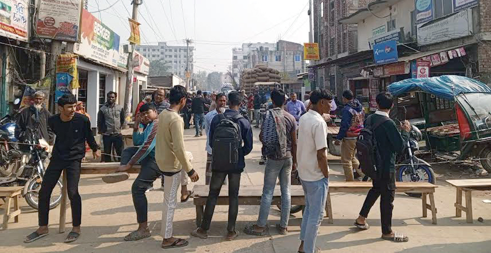 চিরিরবন্দরে দিনের বেলা ট্রাক্টর চলাচল বন্ধের দাবিতে শিক্ষার্থীদের ৪ ঘন্টা সড়ক অবরোধ