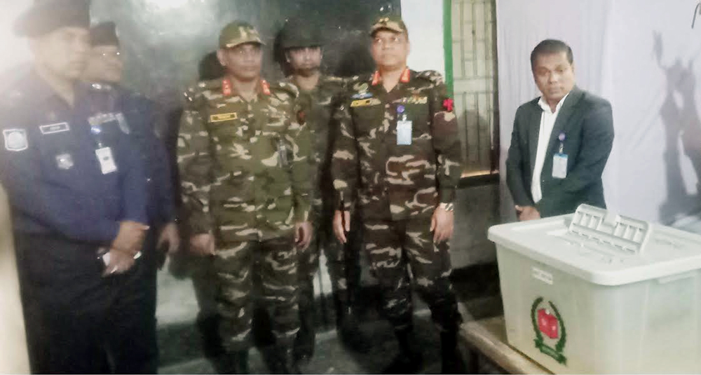 চিরিরবন্দরে রংপুর ৬৬ পদাতিক ডিভিশনের ভোট কেন্দ্র পরিদর্শন