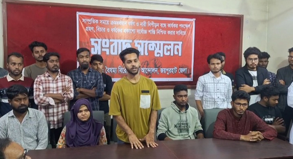 ধর্ষণ ও নারী নিপীড়নের প্রতিবাদে জয়পুরহাটে সংবাদ সম্মেলন করেছে বৈষম্যবিরোধী ছাত্র আন্দোলন। সংবাদ সম্মেলন শেষে তারা নতুন কমিটিতে থাকা সকলের নাম প্রকাশ করেন। এদিকে বৈষম্যবিরোধী ছাত্র আন্দোলনের ঘোষিত কমিটি একতরফা হয়েছে অভিযোগ তুলে ওই কমিটি বাতিলের দাবিতে মানববন্ধন করেছে আরেক পক্ষ।