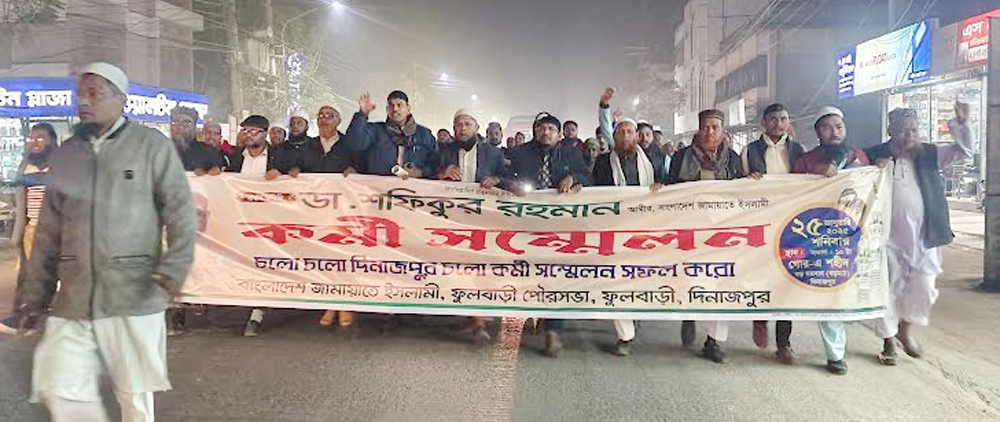 বাংলাদেশ জামায়াতে ইসলামীর আমির ডা. শফিকুর রহমানের শুভাগমনে প্রাণচাঞ্চল্য ফিরে এসেছে দিনাজপুরের ফুলবাড়ীতে। আমিরের আগমন উপলক্ষে ব্যাপক কর্মসূচি হাতে নিয়েছে দলটি। এ কর্মসূচির আওতায় আজ সোমবার বাদ মাগরিব এক বর্ণাঢ্য আনন্দ মিছিল করেন নেতা কর্মীরা।