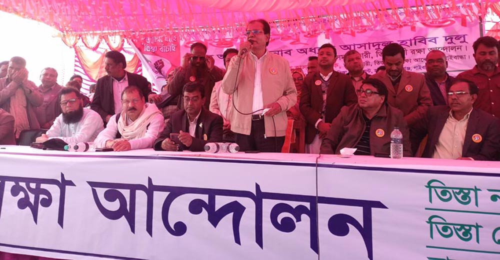 তিস্তা নদী রক্ষা আন্দোলনের প্রধান সমন্বয়ক, বিএনপির কেন্দ্রীয় নির্বাহী কমিটির রংপুর বিভাগীয় সাংগঠনিক স¤পাদক ও সাবেক উপমন্ত্রী অধ্যক্ষ আসাদুল হাবিব দুলু বলেছেন, ‘তিস্তা শুধু একটি নদী নয়, এটি আমাদের সংস্কৃতি, অর্থনীতি ও জীবনের অবিচ্ছেদ্য অংশ। তিস্তা আমাদের জীবনরেখা, এর পানির ন্যায্য হিস্যা আদায় করতেই হবে।’