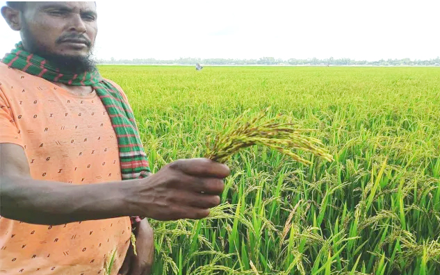 তীব্র তাপদাহে গঙ্গাচড়ায় আমন ধানে চিটা হচ্ছে