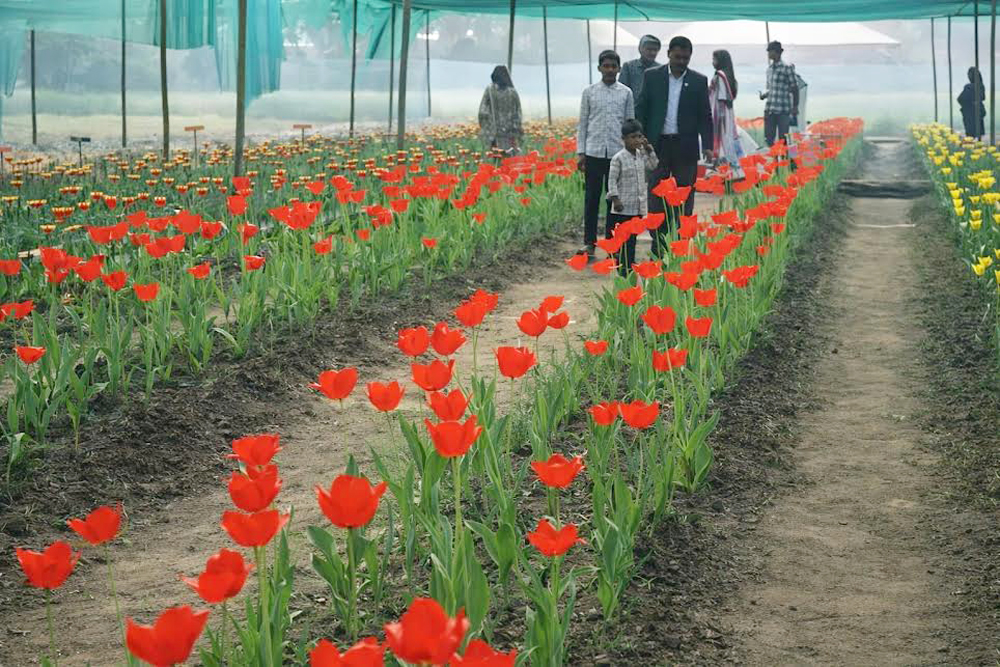 সরেজমিনে দেখা গেছে, সূর্যের আলো ও তাপমাত্রা নিয়ন্ত্রণের জন্য বিশেষ শেডের নিচে সারি সারি করে চাষ করা হয়েছে পাঁচ প্রজাতির অন্তত সাড়ে ১২ হাজার টিউলিপ গাছ। এর মধ্যে লাল রঙের ‘লালিবেলা’ এবং গোলাপি রঙের ‘মিস্টিক ভ্যান ইজক’ প্রজাতির টিউলিপ ইতোমধ্যে ফুটতে শুরু করেছে।