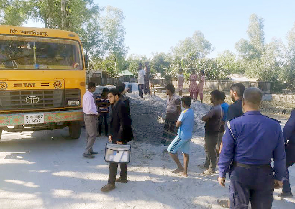 তেঁতুলিয়ায় রাস্তার উপর নির্মাণসামগ্রী- জরিমানা আদায়