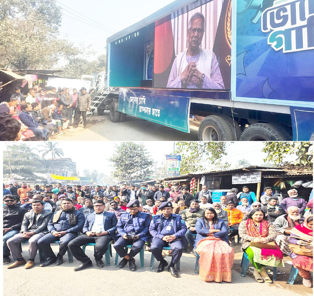 ত্রয়োদশ জাতীয় নির্বাচন ও গণভোটের বার্তা নিয়ে ভোটের গাড়ি এখন বীরগঞ্জে