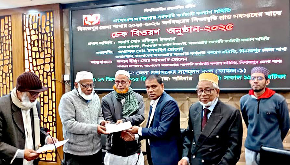 দিনাজপুরে অবসরপ্রাপ্ত সরকারি কর্মচারীদের মাঝে চেক বিতরণ