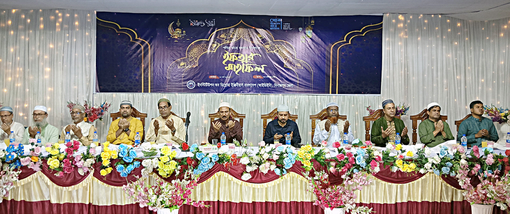 ইফতারের পূর্বে আইডিইবি জেলা শাখা, আইডিইবি’র প্রতিষ্ঠাতা সভাপতি প্রয়াত তাজাম্মুল হোসেন, বিভিন্ন সময়ে আইডিইবি’র নেতৃবৃন্দ ও সদস্য প্রকৌশলী যারা বিগত হয়েছেন, দেশ ও ভাষার জন্য যারা শহীদ হয়েছেন, বৈষম্যবিরোধী আন্দোলনে যারা শহীদ হয়েছেন তাদের রুহের মাগফিরাত কামনায় এবং যারা আহত ও অঙ্গহানী হয়েছেন তাদের সুস্থ ও সুন্দর জীবন কামনায় এবং দেশ ও জাতির সুখ শান্তি এবং সমৃদ্ধি কামনা করে বিশেষ দোয়া পরিচালনা করেন বালুবাড়ী শাহী মসজিদের খতিব আলহাজ্ব মো. শওকত আলী।