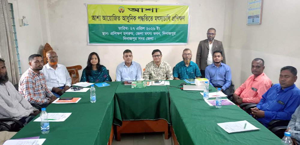 বেসরকারি উন্নয়ন সংস্থা আশা দিনাজপুর সদর জেলা এর আয়োজনে একদিনের আধুনিক পদ্ধতিতে মৎস্য চাষী প্রশিক্ষণ অনুষ্ঠিত হয়েছে।