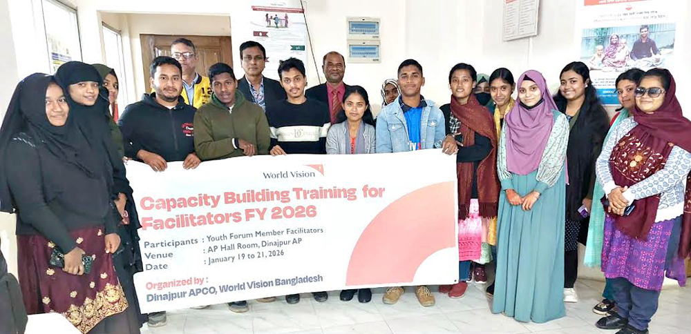 দিনাজপুর এরিয়া প্রোগ্রাম, ওয়ার্ল্ড ভিশন বাংলাদেশের আয়োজনে ইয়ুথ ফোরাম মেম্বার ফেসিলিটেটরদের সক্ষমতা বৃদ্ধির লক্ষ্যে ১৯ জানুয়ারী হতে ২১ জানুয়ারী ৩দিনব্যাপী প্রশিক্ষণ কোর্সের সমাপ্তি হয়েছে। উক্ত প্রশিক্ষণে ১৮ জন প্রশিক্ষনার্থী অংশগ্রহণ করেন।
