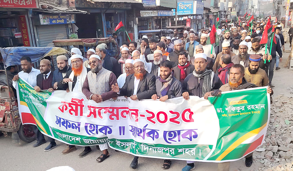 দিনাজপুরে কর্মী সম্মেলন সফলের লক্ষ্যে শহর জামায়াতের মিছিল
