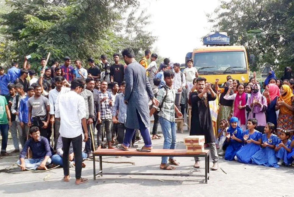 দিনাজপুরে গতিরোধকের দাবিতে মহাসড়ক অবরোধ