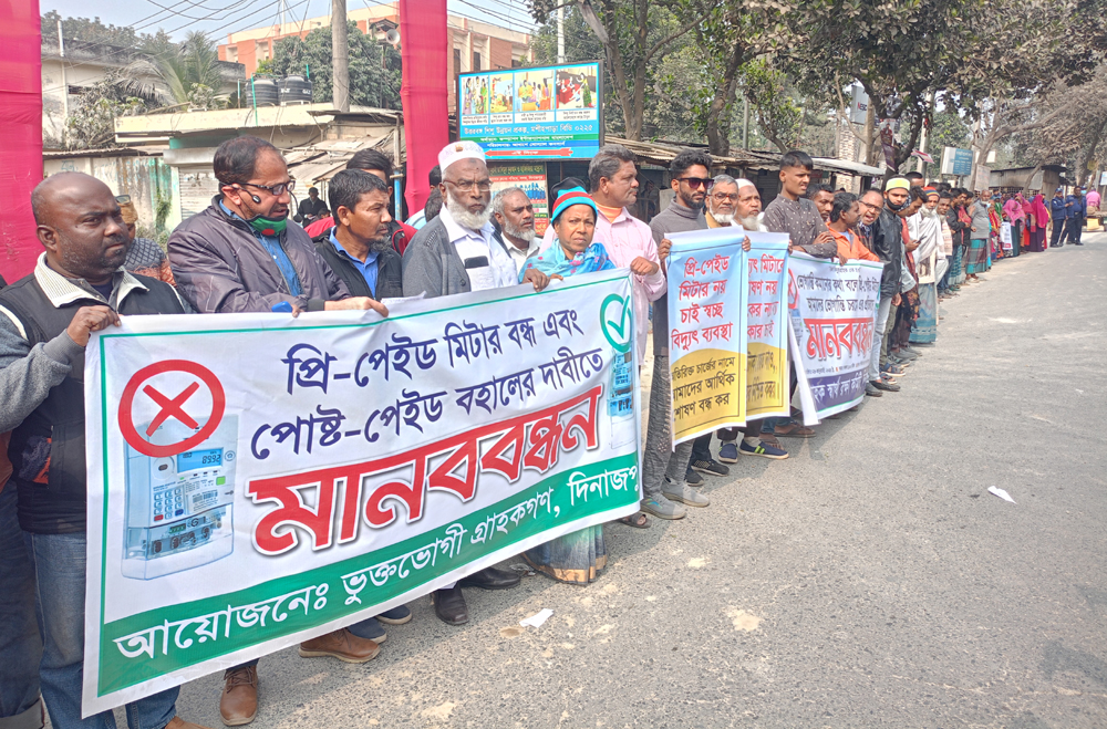 দিনাজপুরে নেসকো’র প্রি-পেইড মিটার বন্ধের দাবিতে মানববন্ধন ও স্মারক লিপি প্রদান
