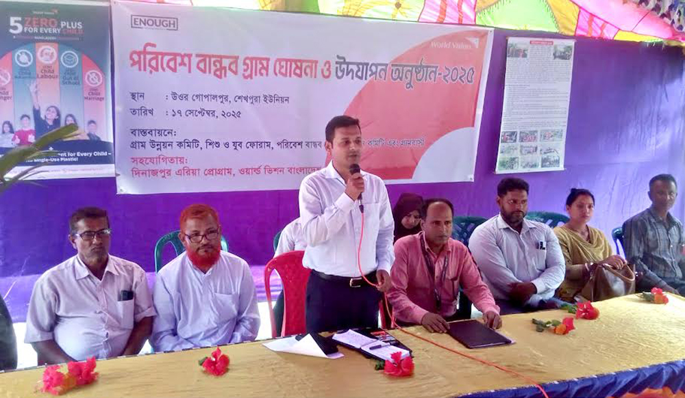 দিনাজপুর সদর উপজেলার ৪নং শেখপুরা ইউনিয়নের উত্তর গোপালপুর গ্রাম উন্নয়ন কমিটি, শিশু ও যুব ফোরাম, পরিবেশ বান্ধব গ্রাম বাস্তবায়ন কমিটি, গ্রামবাসীর বাস্তবায়নে এবং এরিয়া প্রোগ্রাম, ওয়ার্ল্ড ভিশন বাংলাদেশ এর সহযোগিতায় উত্তর গোপালপুর গ্রামকে পরিবেশবান্ধব গ্রাম ঘোষনা ও ওয়ার্ল্ড ভিশনের সাথে চুক্তি স্বাক্ষর করেন দিনজপুর সদর উপজেলা কৃষি অফিসার আব্দুল্লাহ আল মাসুদ তুষার।