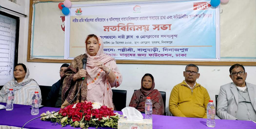দিনাজপুরে নারী ক্লাব ও প্রেসক্লাব সদস্যদের নিয়ে পল্লীশ্রীর মতবিনিময় সভা অনুষ্ঠিত হয়েছে ।আজ বৃহস্পতিবার দুপুরে দিনাজপুর প্রেসক্লাব মিলনায়তনে মানুষের জন্য ফাউন্ডেশন এর সহযোগিতা এবং পল্লীশ্রীর আয়োজনে নারীর প্রতি সহিংসতা প্রতিরোধে ও ঘটনাসমূহ ধারাবাহিকভাবে প্রচারণা অব্যাহত রাখা এবং কমিউনিটির সম্পৃক্ততা বিষয়ে উক্ত মতবিনিময়ে অনুষ্ঠিত হয়।
