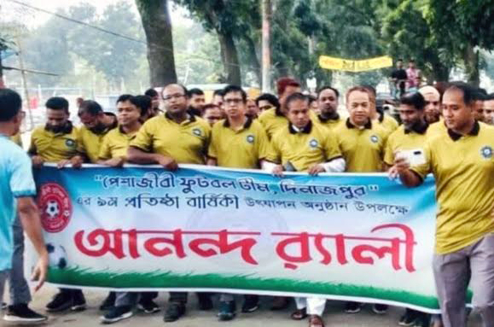 পেশাজীবী ফুটবল টিম দিনাজপুর এর ৯ম প্রতিষ্ঠা বার্ষিকী উপলক্ষে আজ শুক্রবার দিনাজপুর শহরে এক আনন্দ র‍্যালী বের হয়।