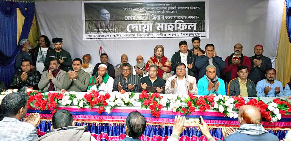 দিনাজপুরে প্রয়াত বেগম জিয়ার রুহের মাগফেরাত কামনায় দোয়া মাহফিল