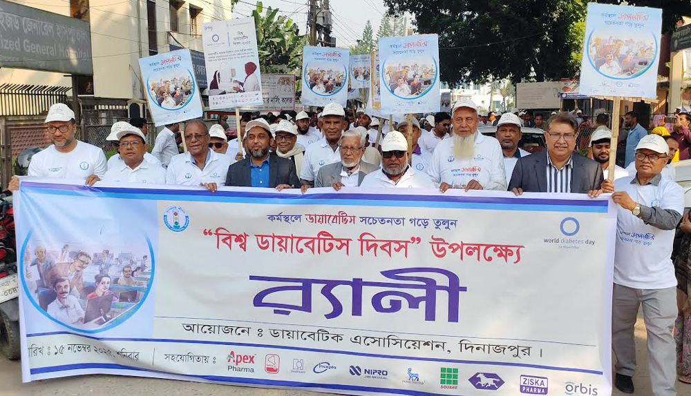 বর্ণাঢ্য র্যালী ও আলোচনা সভার মধ্যদিয়ে দিনাজপুরে যথাযথ মর্যাদায় ‘বিশ্ব ডায়াবেটিস দিবস’ উদযাপন করেছে ডায়াবেটিক এসোসিয়েশন দিনাজপুর।