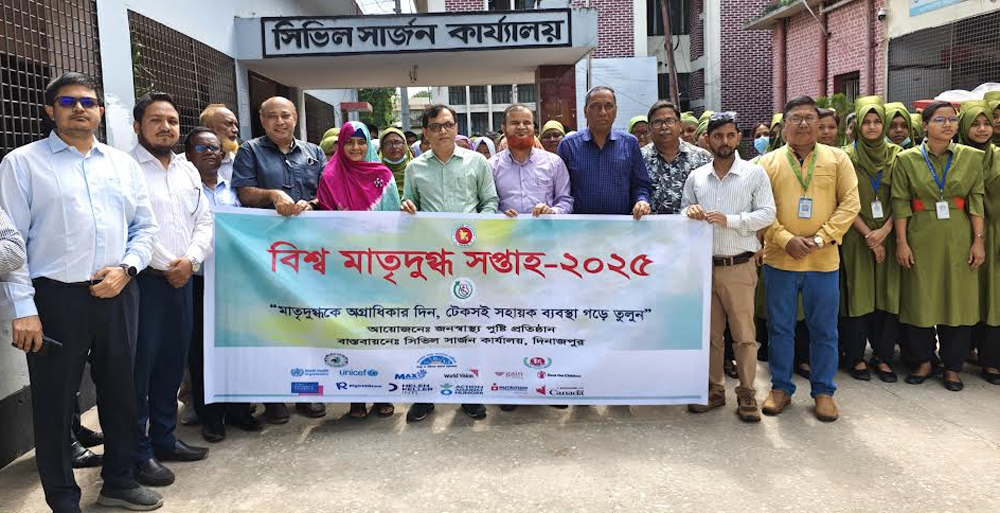 “মাতৃদুগ্ধকে অগ্রাধিকার দিন টেকসই সহায়ক ব্যবস্থা গড়ে তুলুন” এই প্রতিপাদ্যকে সামনে রেখে জনস্বাস্থ্য পুষ্টি প্রতিষ্ঠানের আয়োজনে দিনাজপুর সিভিল সার্জন কার্যালয়ের বাস্তবায়নে বিশ্ব মাতৃদুগ্ধ সপ্তাহ উদ্বোধন উপলক্ষে র্যালি ও আলোচনা সভা অনুষ্ঠিত হয়।