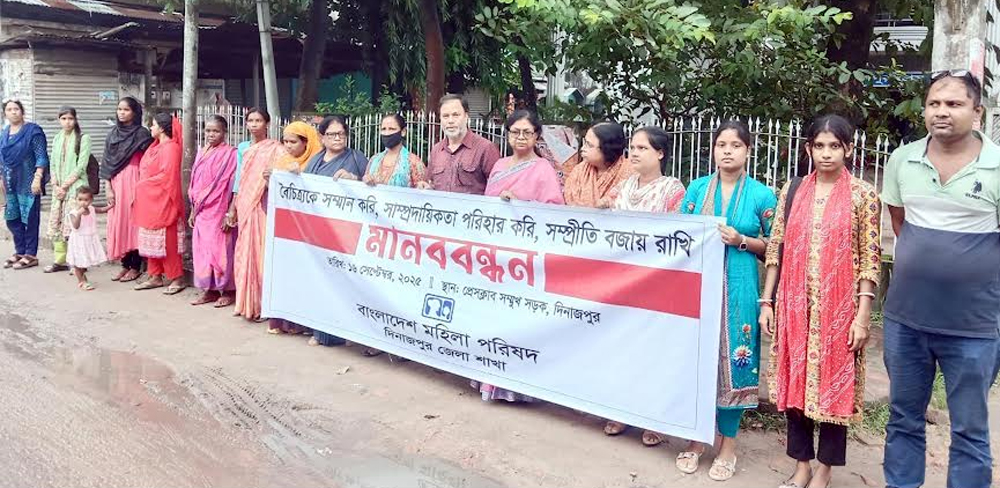 দিনাজপুরে মহিলা পরিষদের উদ্যোগে মানববন্ধন কর্মসূচী পালিত