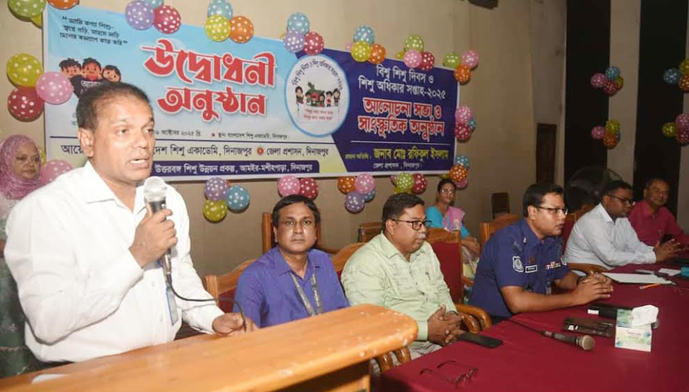 ‘আমি কন্যা শিশু-স্বপ্নে গড়ি, সাহসে লড়ি, দেশের কল্যাণে কাজ করি’ এই প্রতিপাদ্যকে সামনে রেখে দিনাজপুর জেলা প্রশাসন ও বাংলাদেশ শিশু একাডেমী দিনাজপুর জেলা শাখার আয়োজনে বিশ্ব শিশু দিবস ও শিশু অধিকার সপ্তাহ-২০২৫ উদযাপন উপলক্ষ্যে আলোচনা সভা ও সাংস্কৃতিক অনুষ্ঠান অনুষ্ঠিত।