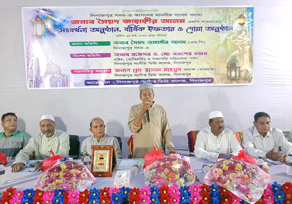 দিনাজপুর সংগীত ডিগ্রী কলেজের উদ্যোগে দিনাজপুর সদর আসনের এমপির সংবর্ধনা, বার্ষিক ইফতার ও দোয়া মাহফিল অনুষ্ঠিত হয়েছে।