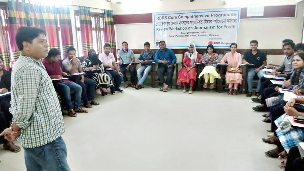 দিনাজপুর শহরের বালুবাড়ি পল্লীশ্রী’র মিলনায়তনে বেসরকারি উন্নয়ন সংস্থা আরডিআরএস বাংলাদেশ এর আয়োজনে ফেডারেশন যুব ফোরাম সদ্যসদের নিয়ে দিন ব্যাপী সাংবাদিকতা বিষয়ক রিভিউ প্রশিক্ষণ কর্মশালা অনুষ্ঠিত হয়েছে। উক্ত কর্মশালা ২৫জন ফেডারেশন যুব ফরাম সদস্যরা অংশগ্রহণ করেন।