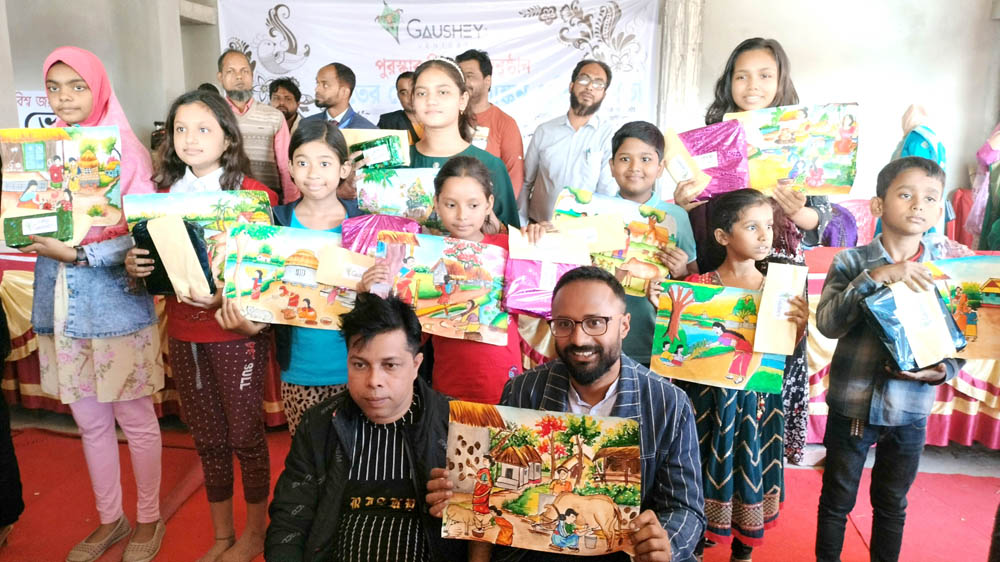 প্রতিযোগিতা শেষে বিজয়ী শিক্ষার্থীদের মাঝে পুরস্কার বিতরণ করেন গওশেজ ভেঞ্চার্স কিন্ডার গার্টেন স্কুলের প্রতিষ্ঠাতা পরিচালক মো. আজিজুর রহমান গওশেজ, অধ্যক্ষ মো. তারেক আজিজুর রহমান, দিনাজপুর শিশু একাডেমীর আর্ট প্রশিক্ষক আখতারুন্নাহার, থ্রি-ফিঙ্গার এর পরিচালক একরামুল হক সোহেল, দিনাজপুর জিলা স্কুলের সিনিয়র শিক্ষক মো. কামরুজ্জামান, রং পেন্সিল আর্ট একাডেমীর পরিচালক রাকিউর রহমান পায়েল, দিনাজপুর আর্ট একাডেমীর পরিচালক আবু সাঈদ রুবেল প্রমুখ।