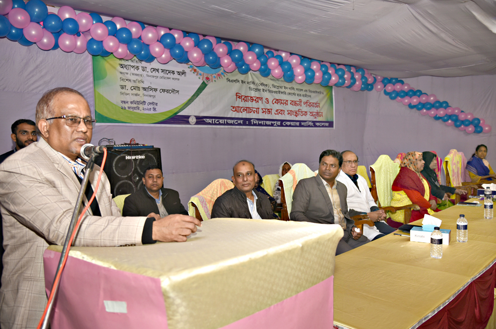 আজ রোববার শহরের বন্ধন কমিউনিটি সেন্টারে দিনাজপুর কেয়ার নাসিং কলেজ এর অধ্যক্ষ ড. শারমিন সাত্তার এর সভাপতিত্বে অনুষ্ঠানে বিশেষ অতিথির বক্তব্য রাখেন দিনাজপুর সিভিল সার্জন কার্যালয়ের মেডিকেল অফিসার ডা. কাওসার আহমেদ, দিনাজপুর সরকারি নার্সিং কলেজের অধ্যক্ষ কহিনুর বেগম, জিয়া হার্ট ফাউন্ডেশনের ভারপ্রাপ্ত সাধারন সম্পাদক আবু তাহের আবু, যুগ্ম সম্পাদক ডা. মো. জিয়াউল হক, কোষাধ্যক্ষ মো. আনোয়ারুল কবির, জিয়া হার্ট ফাউন্ডেশন হাসপাতাল এন্ড রিসার্চ ইনস্টিটিউট এর ভারপ্রাপ্ত পরিচালক ডা. সুধারঞ্জন রায়, জিয়া হার্ট ফাউন্ডেশনের সদস্য মমতাজ বেগম। শুভেচ্ছা বক্তব্য রাখেন দিনাজপুর কেয়ার নাসিং কলেজের শিক্ষক ও ছাত্র-ছাত্রীবৃন্দ। অনুষ্ঠান পরিচালনা করেন কেয়ার নাসিং কলেজের ৪র্থ বর্ষের শিক্ষার্থী জিন্নাত জাহান ও মাহবুবুর রহমান জীবন।
