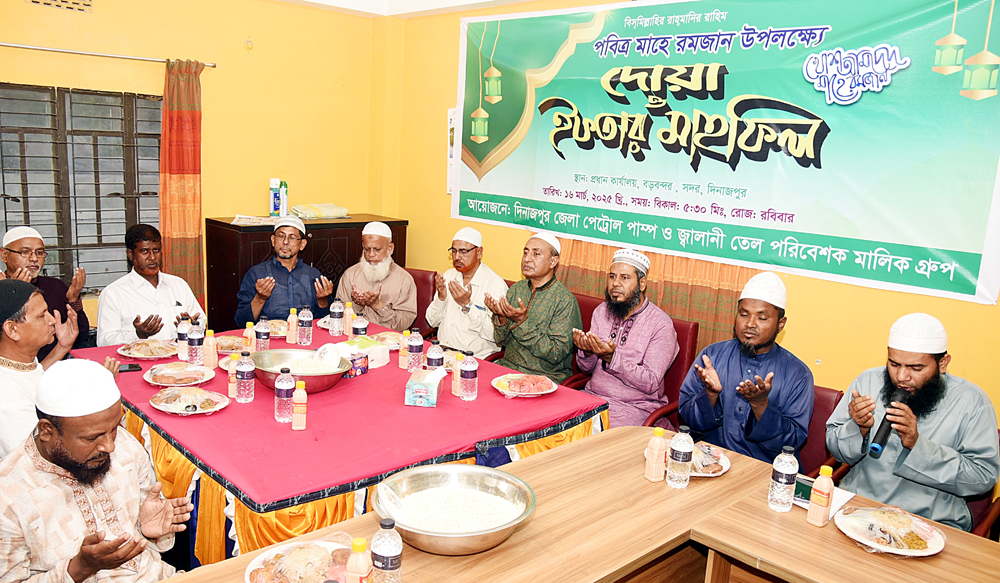 পবিত্র মাহে রমজান উপলক্ষ্যে দিনাজপুর জেলা পেট্রোল পাম্প ও জ্বালানি তেল পরিবেশক মালিক গ্রুপের উদ্যোগে দোয়া ও ইফতার মাহফিল অনুষ্ঠিত হয়েছে।