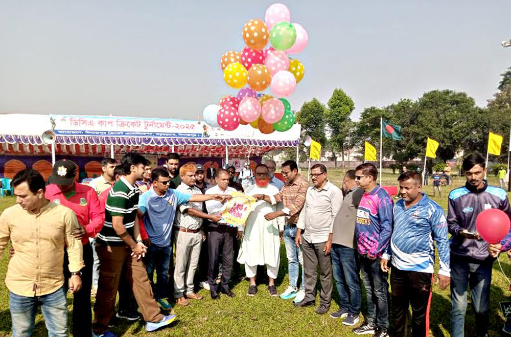 আজ শনিবার বিকেএসপি দিনাজপুরের চীফ কোচ ক্রিকেট আ.ই. মো. আনোয়ার ডিয়ার এর সভাপতিত্বে বিশেষ অতিথি হিসেবে বক্তব্য রাখেন দিনাজপুর শিল্প ও বণিক সমিতির সভাপতি আলহাজ্ব আবু বক্কর সিদ্দিক, জেলা ক্রীড়া অফিসার মো. আসাদুজ্জামান, দিনাজপুর প্রেসক্লাবের সাধারন সম্পাদক গোলাম নবী দুলাল, বিকেএসপি’র উপপরিচালক মাসুদ হাসান। স্বাগত বক্তব্য রাখতে গিয়ে ডিসিএ কাপ ক্রিকেট টুর্নামেন্টের আহবায়ক ও জেলা ক্রীড়া সংস্থার আহবায়ক কমিটির সদস্য এবং বাংলাদেশ ক্রিকেট বোর্ডের কাউন্সিলর মো. রেহাতুল ইসলাম খোকা বলেন, দিনাজপুরের জেলা প্রশাসক মো. রফিকুল ইসলাম ঐতিহ্যবাহী বড় ময়দানকে সবুজায়ন করে দিনাজপুরবাসীকে সুন্দর একটি খেলার মাঠ উপহার দিয়েছেন। আমরা তার প্রতি কৃতজ্ঞতা প্রকাশ করছি। তিনি একজন ক্রীড়াবান্ধব মানুষ হিসেবে দিনাজপুরের খেলোয়াড়দের হৃদয়ে চিরদিন স্মরণীয় হয়ে থাকবেন। প্রধান অতিথি জেলা প্রশাসক মো. রফিকুল ইসলাম বলেন, আপনাদের সহযোগিতায় দিনাজপুর বড় ময়দানকে একটি আন্তর্জাতিক মানের খেলার মাঠে রুপান্তর করা হবে। একজন প্রকৃত খেলোয়াড় হতে হলে প্রতিদিন খেলার চর্চা করতে হবে। মনে রাখবেন লেখাপড়ার সাথে খেলাধুলার মধ্যে কোন বিরোধ নেই। এই মাঠে কোন প্রকার যানবাহন চলাচল না করতে পারে, দোকান প্রকার দোকানপাঠ না বসতে পারে, আমরা যদি কেউ ময়লা-আবর্জনা না ফেলি তবে এই মাঠের সৌন্দর্য্য বৃদ্ধি পাবে। ডিসিএ কাপ ক্রিকেট টুর্নামেন্টে দিনাজপুরের ৫টি ক্রিকেট দল অংশগ্রহণ করছে। মুন্সিপাড়া ওয়ারিয়ার্স, মাসুম ব্রেড এন্ড বিস্কুট ফ্যাক্টরী, আমাদের পাঠশালা, দিনাজপুর ডমিনেটরস ও মনতা রাইডার্স। উদ্বোধনী খেলায় অংশগ্রহণ করে মুন্সিপাড়া ওয়ারিয়ার্স বনাম মনতা রাইডার্স। খেলায় আপ্যায়ার হিসেবে খেলা পরিচালনা করেন আরিফুল আলম পল্লব, কামরুজ্জামান তালুকদার মাসুম এবং স্করার হিসেবে ছিলেন মো. নওশাদ। সঞ্চালকের দায়িত্ব পালন করেন শামীম কবীর অপু।