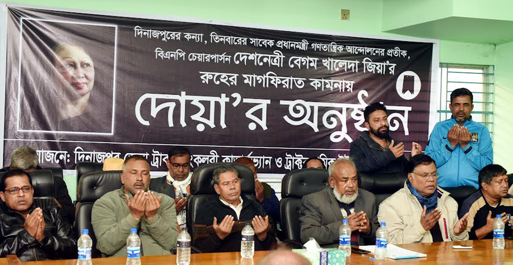 দিনাজপুর বেগম জিয়ার রুহের মাগফিরাত কামনায় দোয়া মাহফিল অনুষ্ঠিত