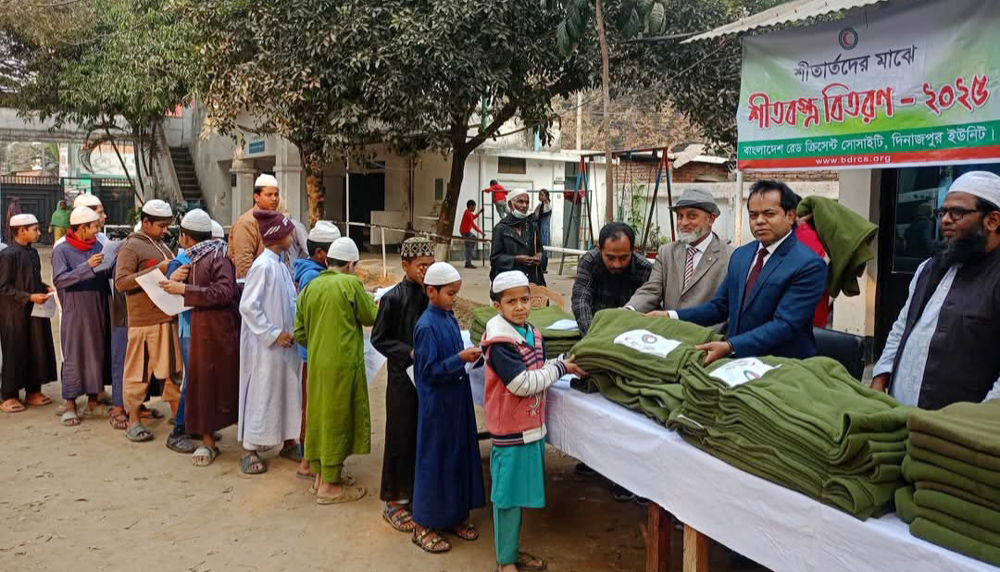 দিনাজপুর রেডক্রিসেন্ট সোসাইটির উদ্যোগে দু’শতাধিক পরিবারে শীতবস্ত্র বিতরণ
